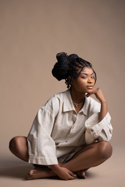 有关发髻, 咖啡色头发的女人, 工作室拍摄的免费素材图片