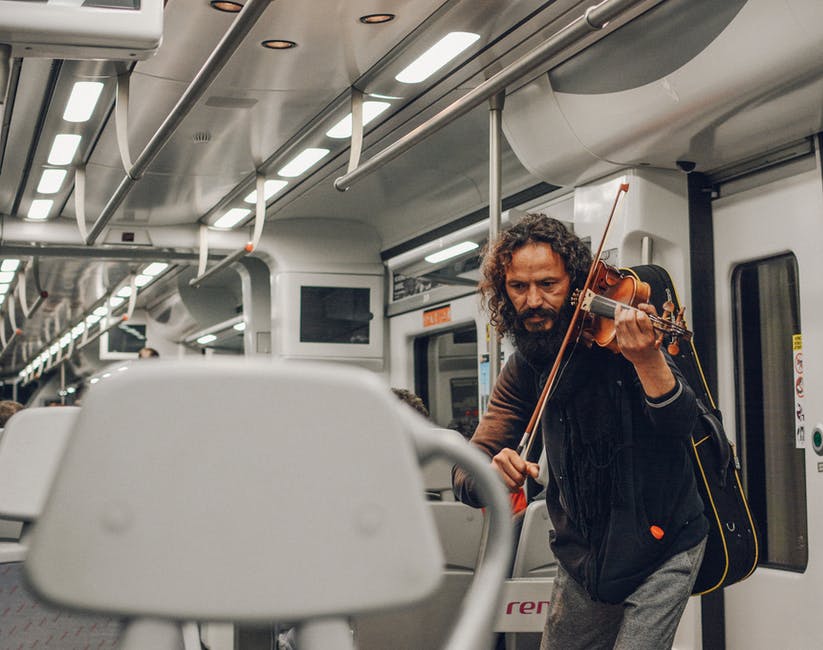 在火车里面拉小提琴的人 · 免费素材图片