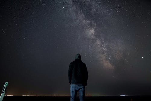 站在道路上的星空的匿名游客拍照 · 免费素材图片