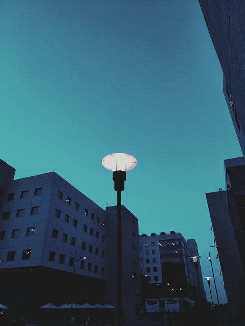 在傍晚的天空下点燃街边的灯柱 · 免费素材图片