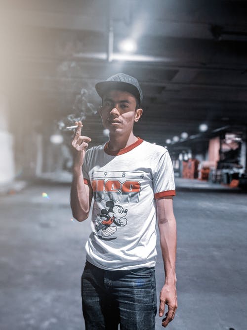 戴着墨镜抽烟的人的灰度照片 · 免费素材图片
