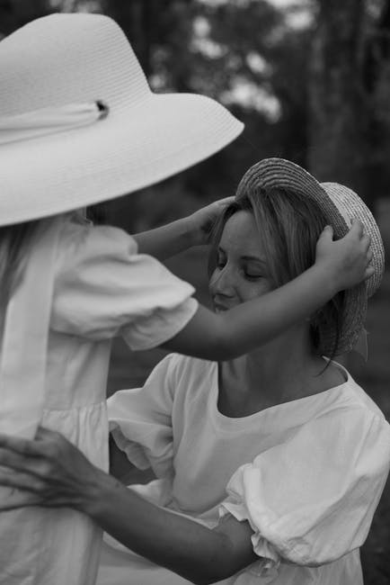 女儿把帽子戴在妈妈头上的照片 · 免费素材图片