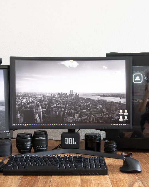 现代计算机与桌上的屏幕保护程序 · 免费素材图片