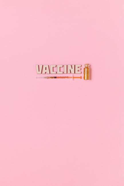 粉红色的背景上的注射器和疫苗文本 · 免费素材图片