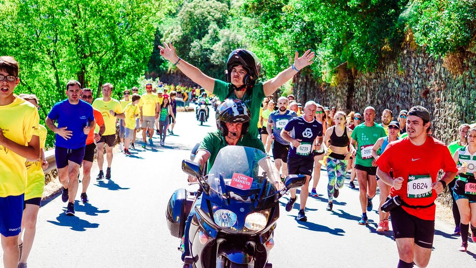 人骑摩托车附近人杂耍 · 免费素材图片