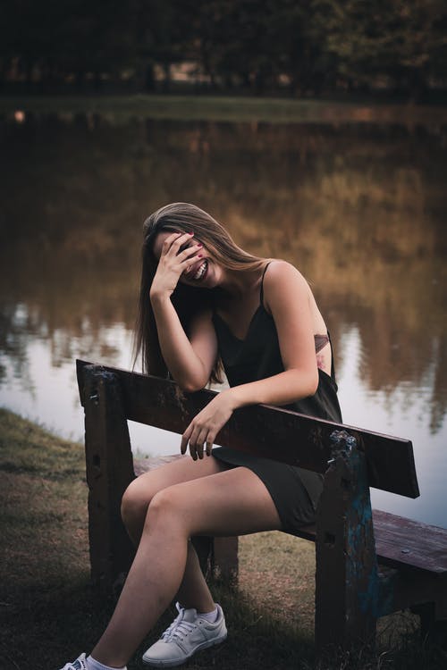 站在涂鸦墙旁边的笑女人的侧视图照片 · 免费素材图片