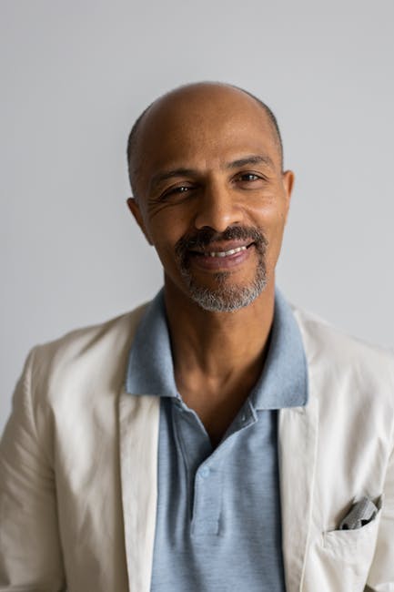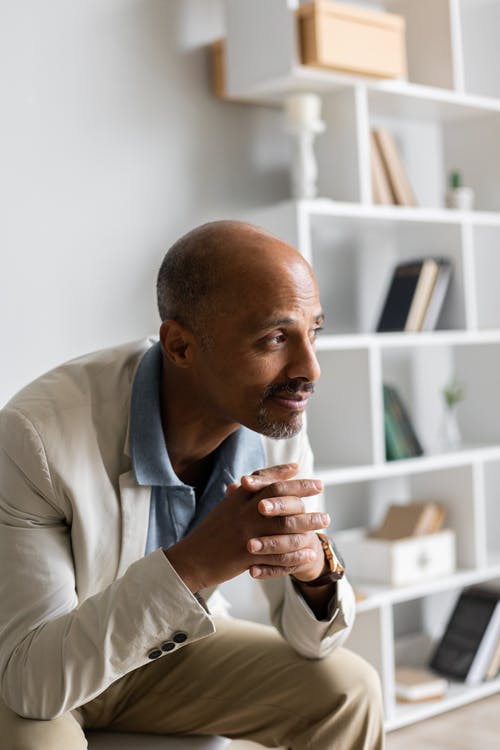 衬衫和白色外套的蓝色按钮的人 · 免费素材图片