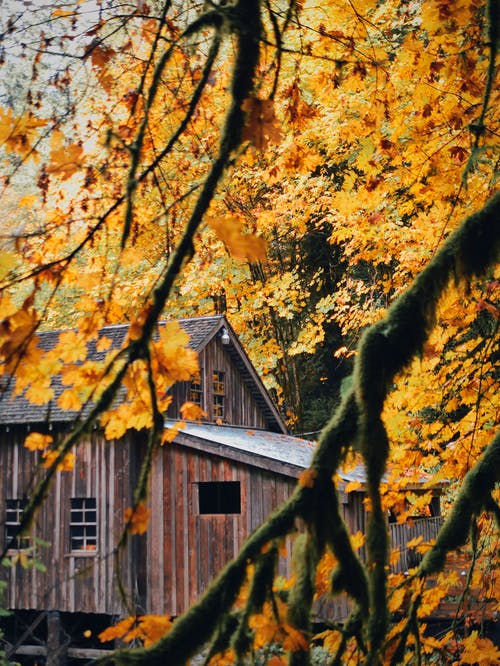 寂寞的房子,在秋天的树林 · 免费素材图片
