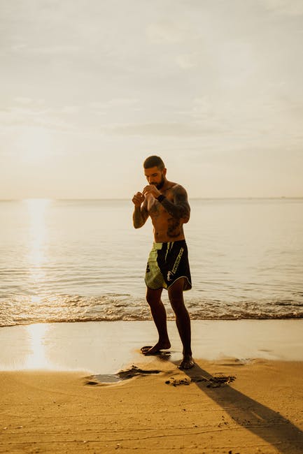 黑色短裤站在日落海滩上的男孩 · 免费素材图片