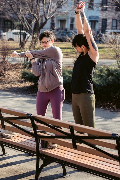 多种族的嬉戏女孩在跑道上锻炼前的热身 · 免费素材图片