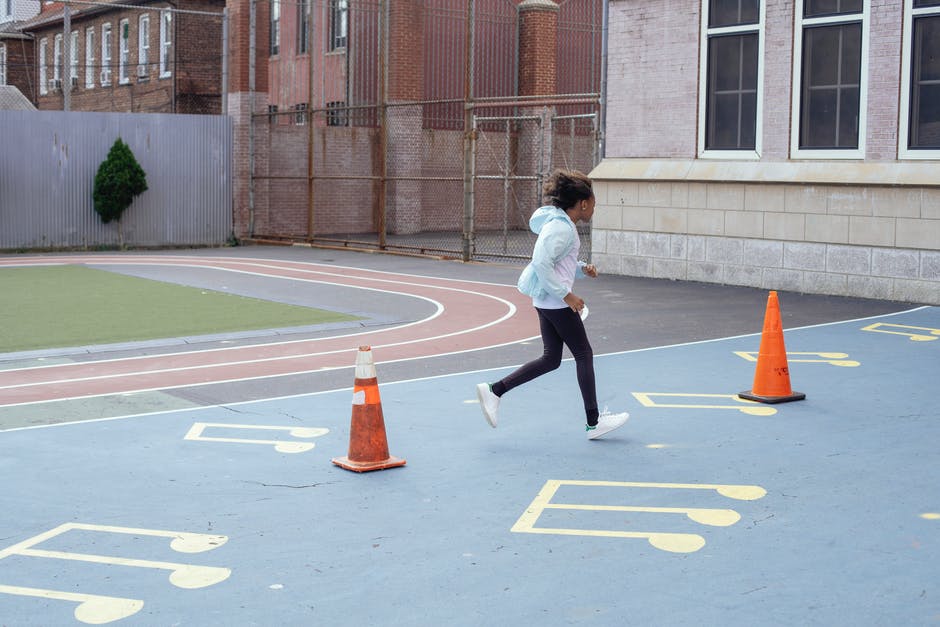 活跃的嬉戏女孩在学校附近的操场上休息期间快速运行 · 免费素材图片