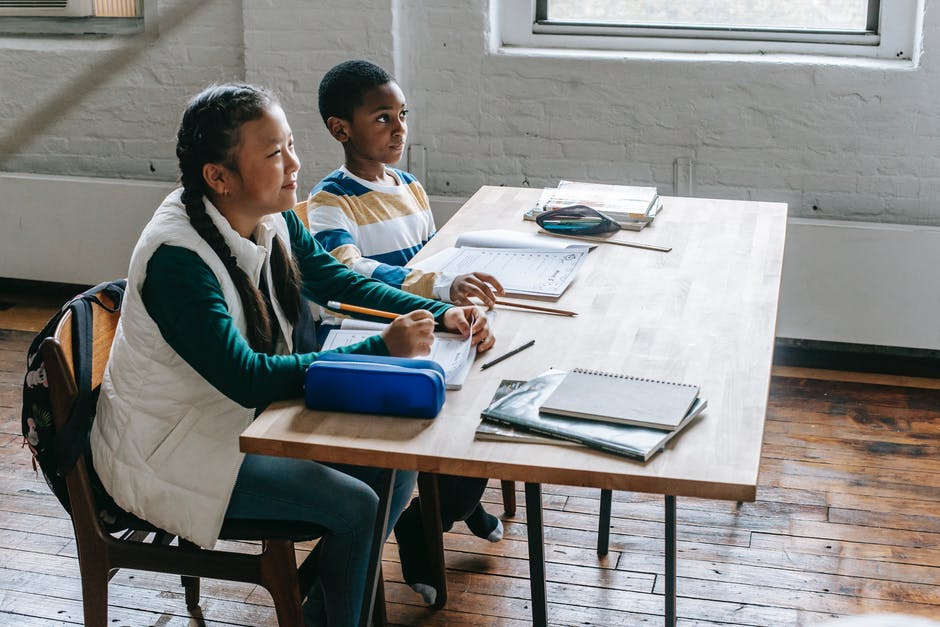 坐在教室的桌子上的内容多样的同学 · 免费素材图片