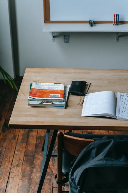 在现代教室里有抄写本的课桌 · 免费素材图片