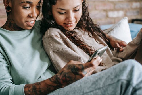 不同的孩子,与智能手机在沙发上 · 免费素材图片