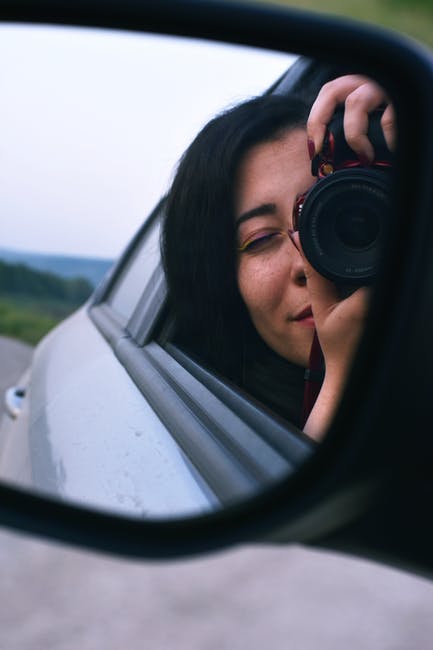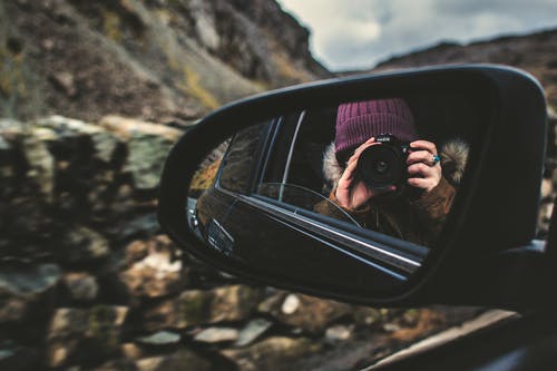 女人在车镜上拍照 · 免费素材图片
