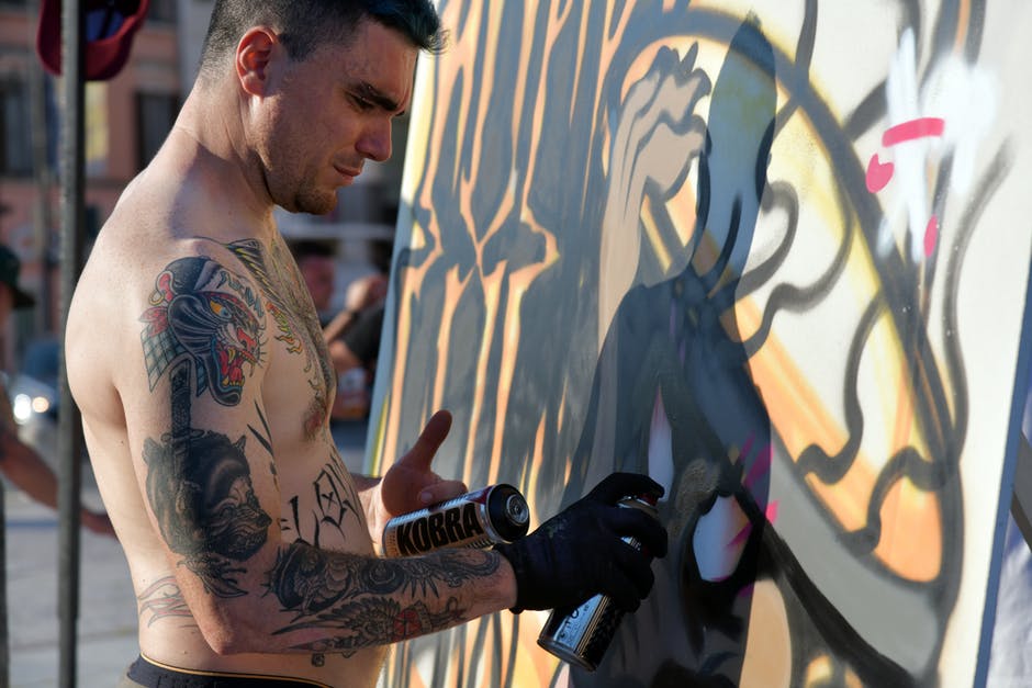 裸照纹身艺术家绘画墙的侧视图照片 · 免费素材图片
