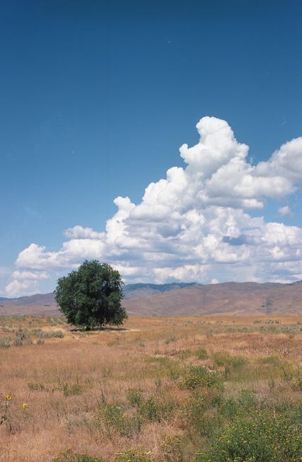 一棵树在多云的天空下的棕色草田 · 免费素材图片