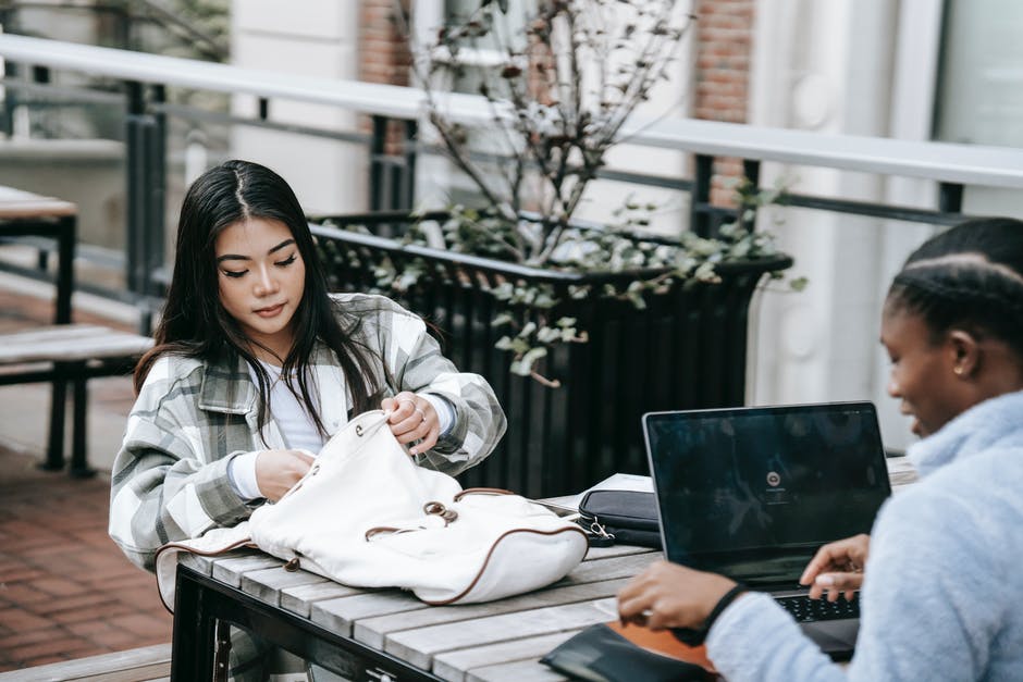 使用黑色便携式计算机的白夹克的女人 · 免费素材图片