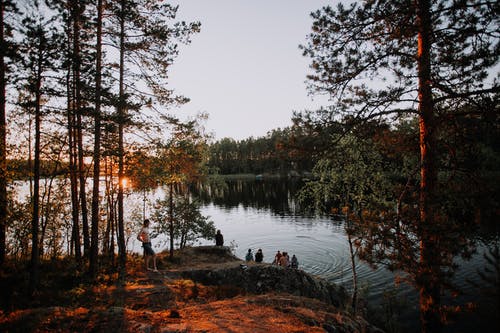 人们骑着小船在山附近的湖上 · 免费素材图片