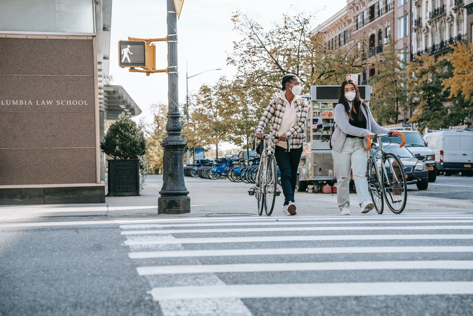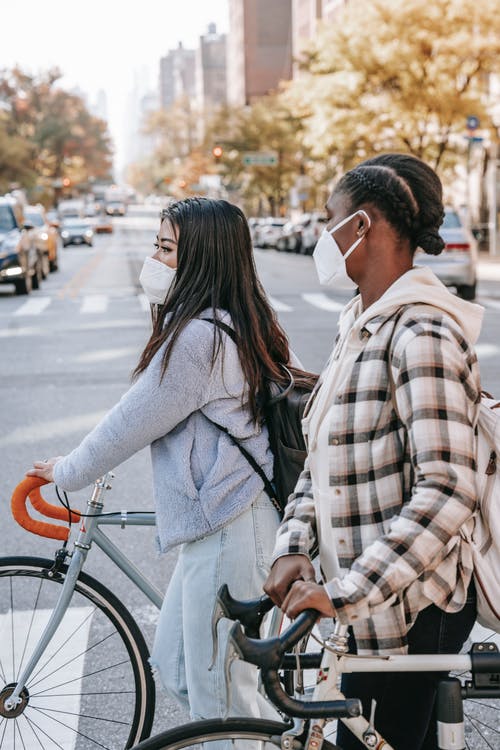 男人和女人在行人专用车道上骑自行车 · 免费素材图片