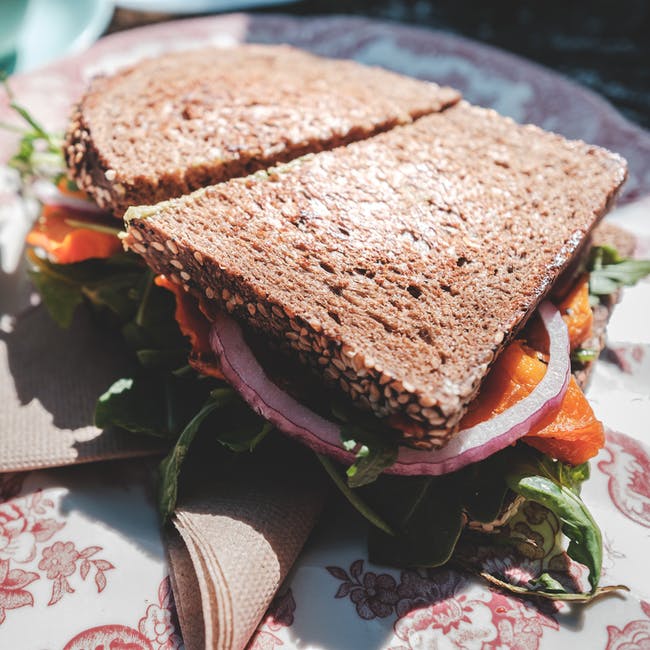 美味的素食三明治,红洋葱和晒干的番茄 · 免费素材图片