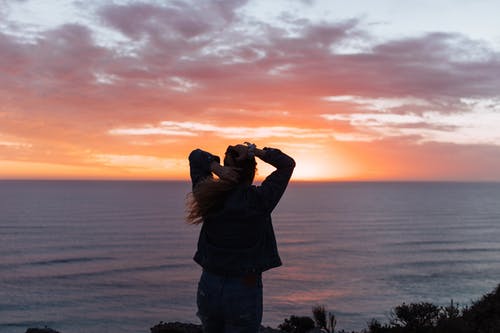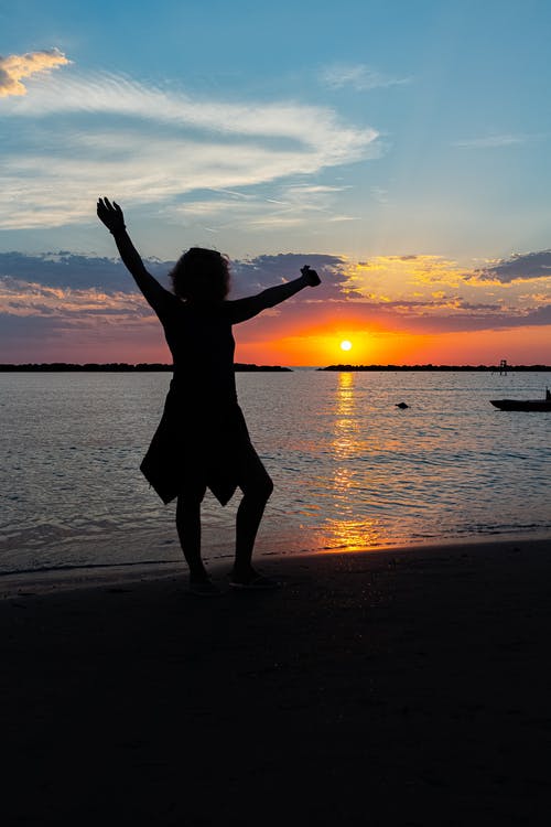 不可识别的人在海滩上享受日落 · 免费素材图片