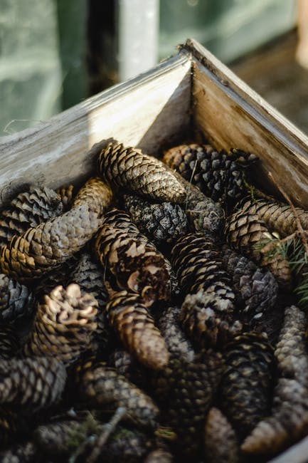 棕色松果上棕色木箱 · 免费素材图片