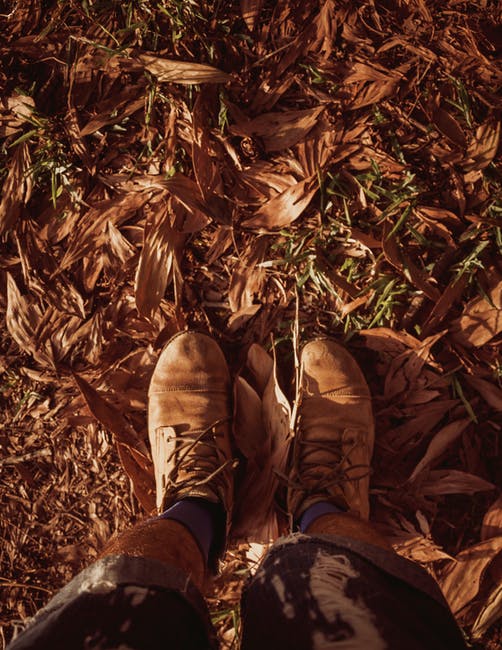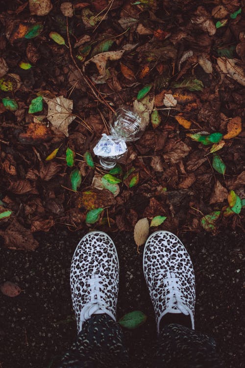 站在干树叶上的人 · 免费素材图片