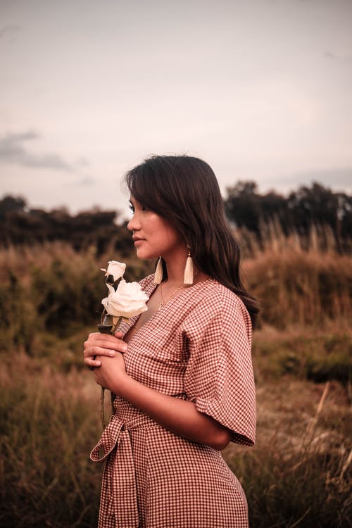红色和黑色的圆点长袖连衣裙的女人的选择性聚焦摄影 · 免费素材图片