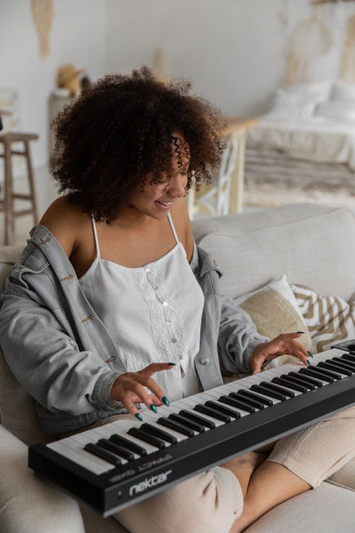 弹钢琴的白色长袖衬衫的女人 · 免费素材图片