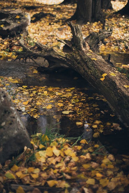 落叶在水和近树日志上的照片 · 免费素材图片