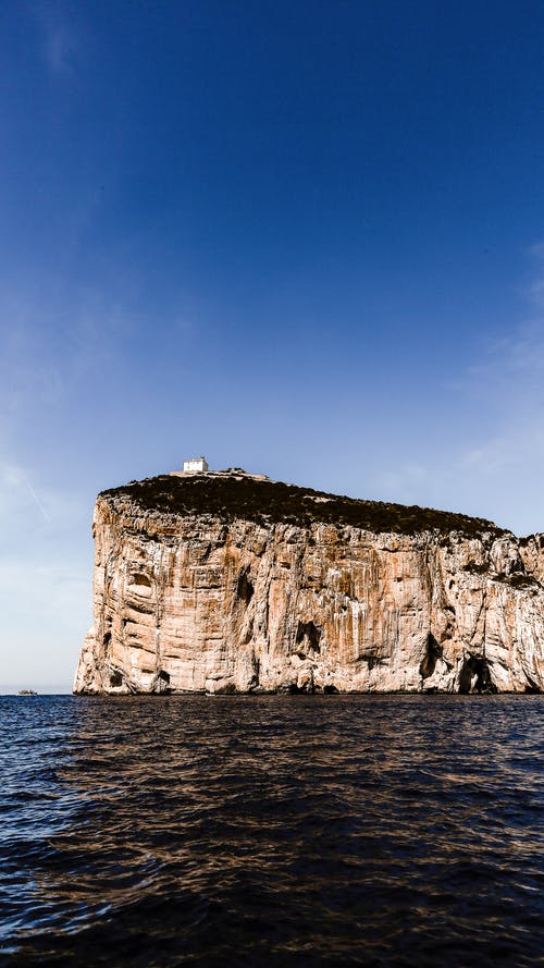 山与绿色的树木,旁边海洋 · 免费素材图片