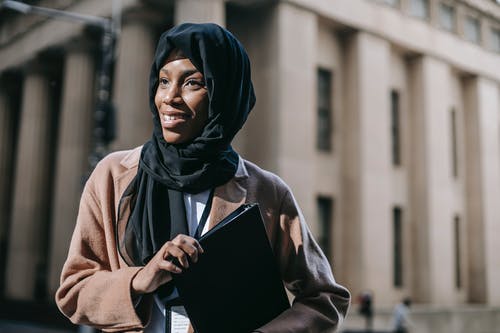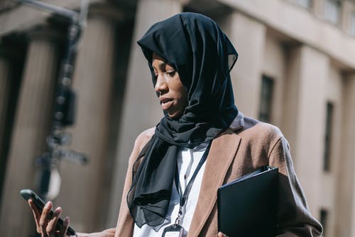 拿着智能手机的黑头巾的女人 · 免费素材图片