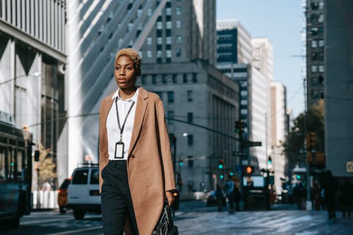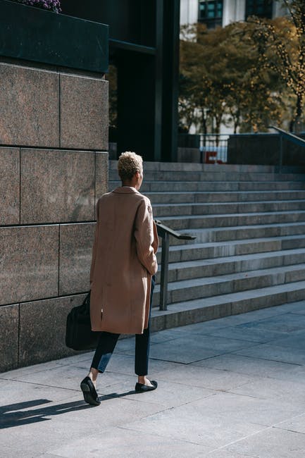 棕色外套在灰色的混凝土楼梯上行走的女人 · 免费素材图片