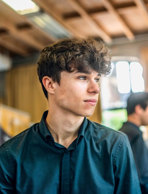 黑色礼服衬衫的男人的选择性聚焦肖像照片向他的左边看 · 免费素材图片