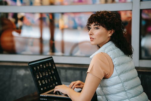 拿着黑色的平板电脑的白衬衫的女人 · 免费素材图片