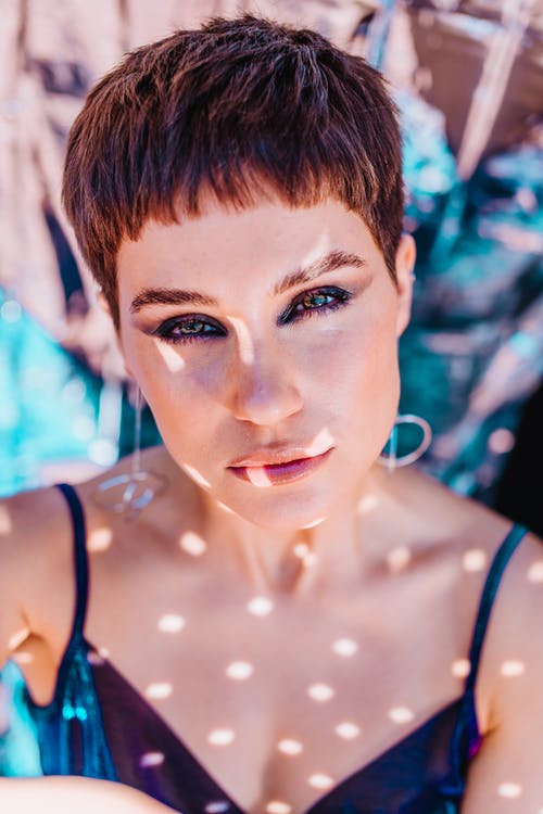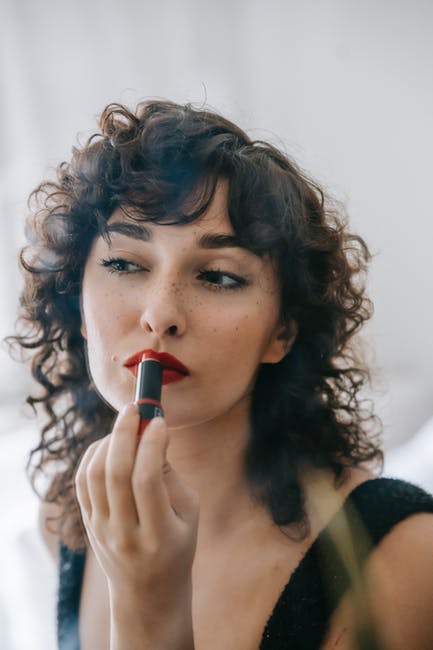 拿着红色唇膏的黑色和绿色衬衫的女人 · 免费素材图片