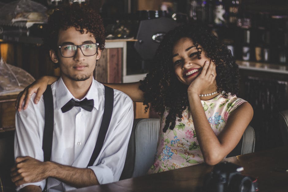 男人和女人坐在桌子旁边的椅子上 · 免费素材图片