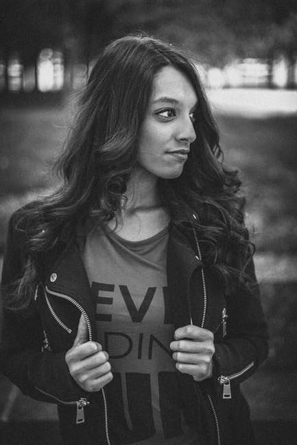 女人看着侧身时抱着她的夹克 · 免费素材图片