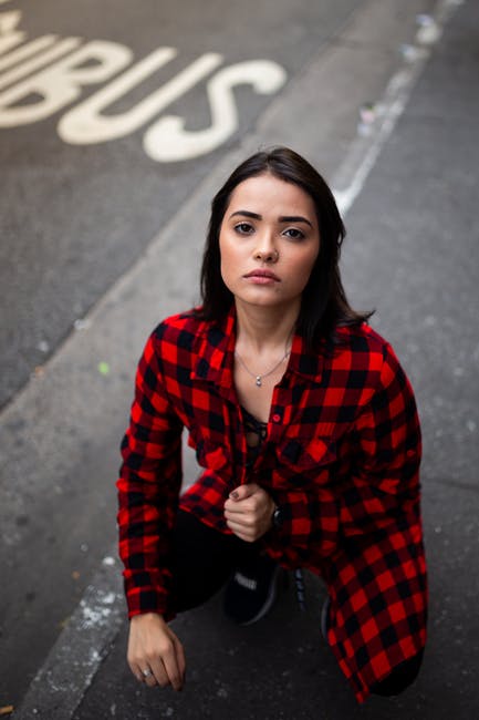 女人穿着红色格子衬衫的高角度照片 · 免费素材图片