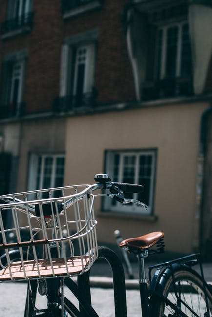 停放的城市自行车与建筑在背景中的特写照片 · 免费素材图片