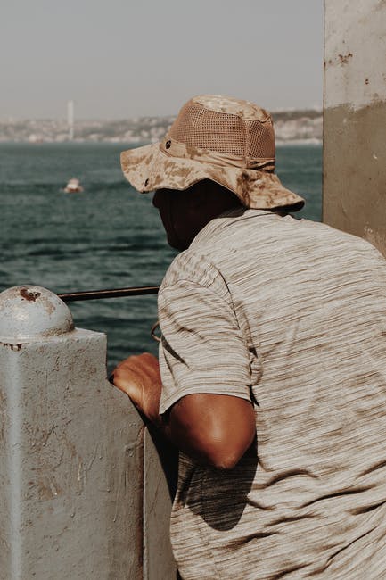 在水体附近戴灰色和棕色帽子的人 · 免费素材图片