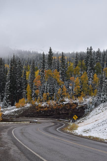 蜿蜒的路,附近群山环抱的树木 · 免费素材图片