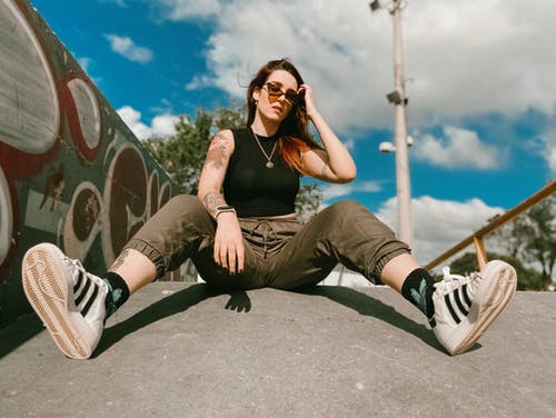 时尚年轻黑人女性千禧年冷在棕榈附近的街道上 · 免费素材图片