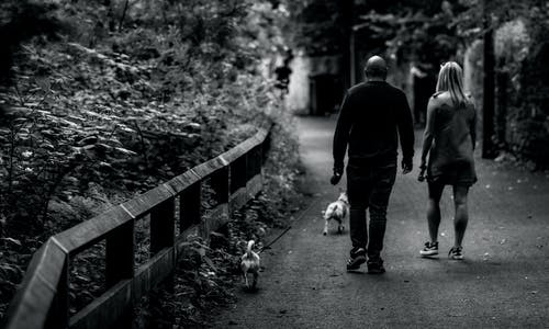 两名男子在树木附近的道路上行走 · 免费素材图片