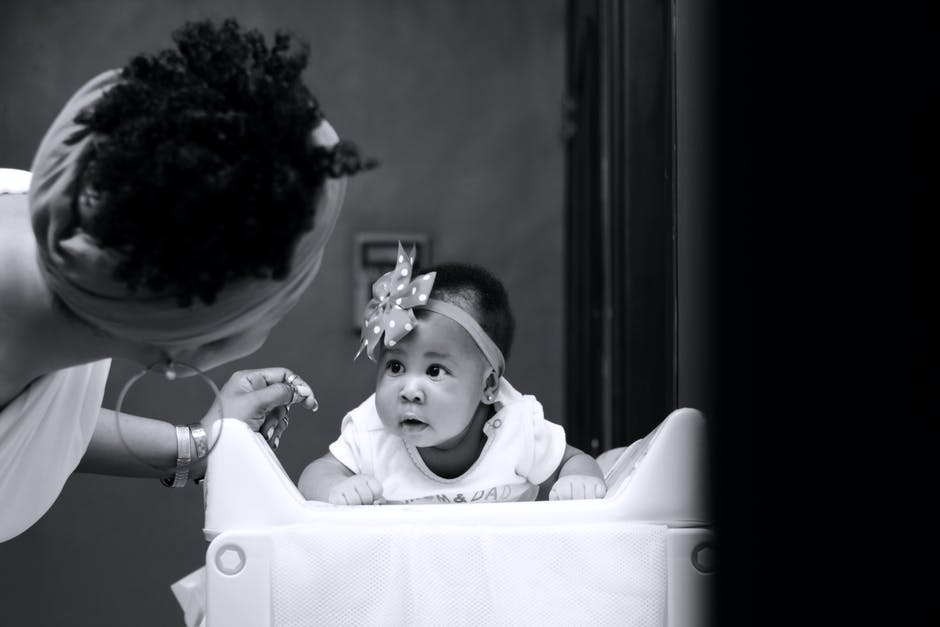 母亲看着婴儿的灰度照片 · 免费素材图片