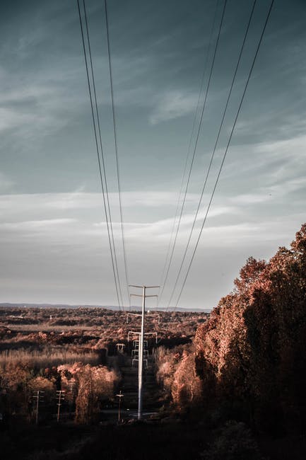 多云的天空下树木附近的电线站 · 免费素材图片