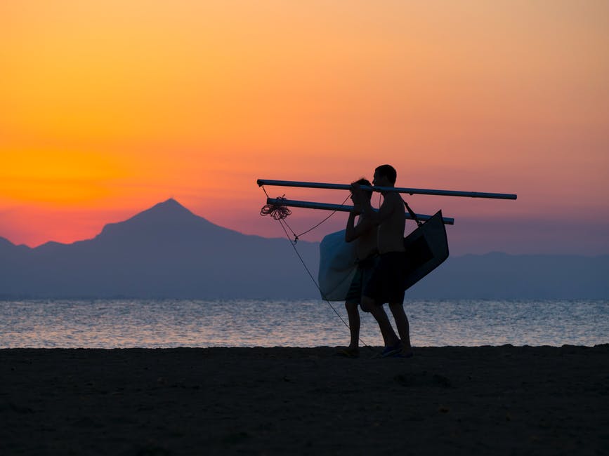 在海滩岸边散步时携带电杆的人 · 免费素材图片