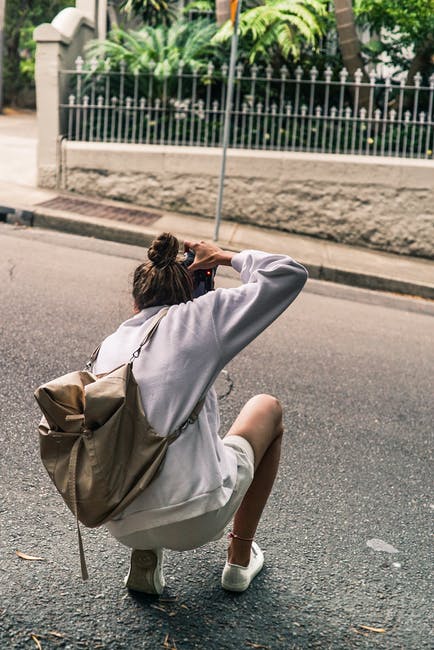 拍照时跪在路上的人 · 免费素材图片