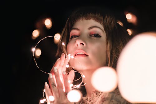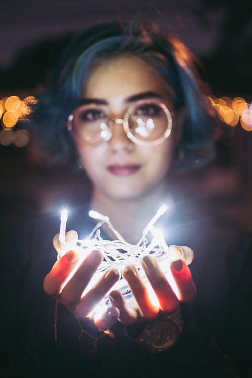 戴着墨镜拿着灯串的女人的照片 · 免费素材图片
